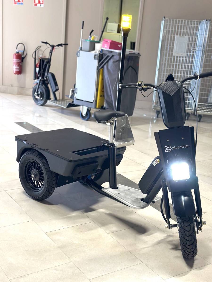Le triporteur électrique Cobrane a été pensé pour ce contexte : propreté en galerie, maintenance légère, micro-livraisons entre réserves, collecte de déchets et navettes rapides entre parking et zones techniques.